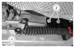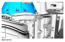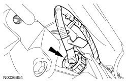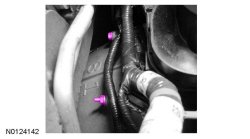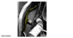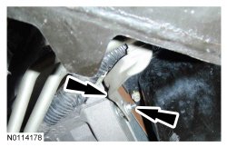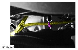 29. Position the transmission fluid cooler tubes and a new transmission fluid cooler tube bracket bolt.