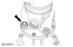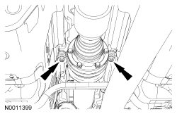 - Install the new center bearing bolts finger-tight until after the front flange bolts are tightened to specifications.