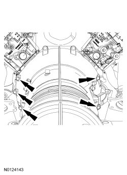 NOTICE: The torque converter housing is piloted into position by dowels in the rear of the engine block. The torque converter must rest squarely against the flexplate. This indicates that the torque converter pilot is not binding in the engine crankshaft.