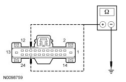 - Measure the resistance between BCM-B (Body Control Module B) C4368A-10, circuit CPW73 (GN/VT), harness side and ground; and between BCM-B (Body Control Module B) C4368A-22, circuit CPW73 (GN/VT), harness side and ground.
