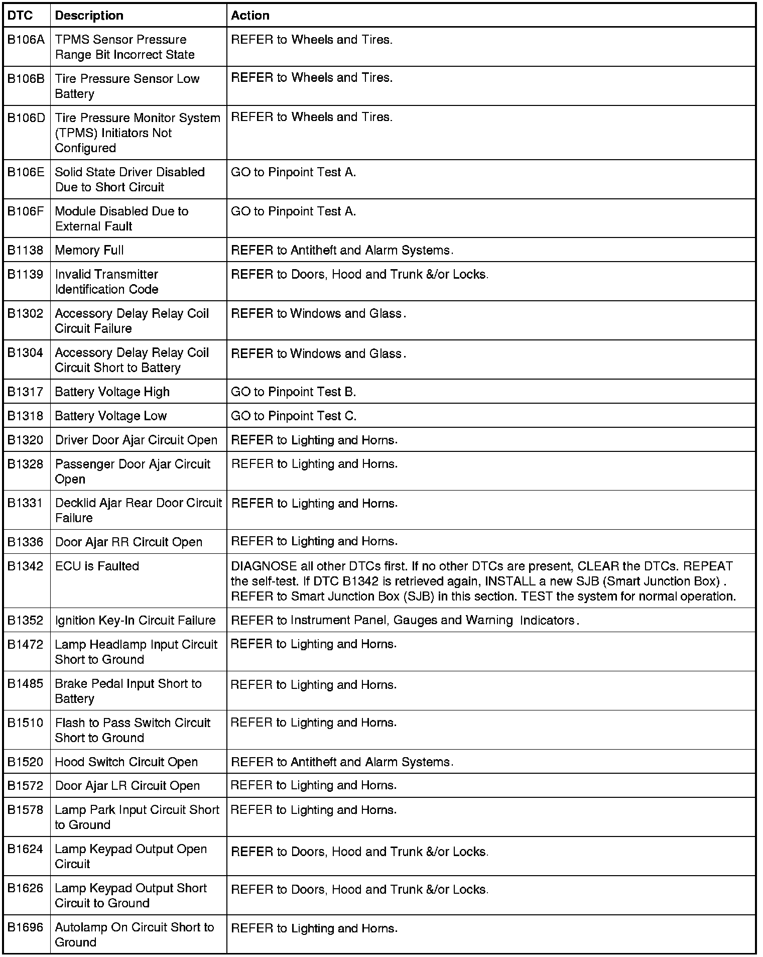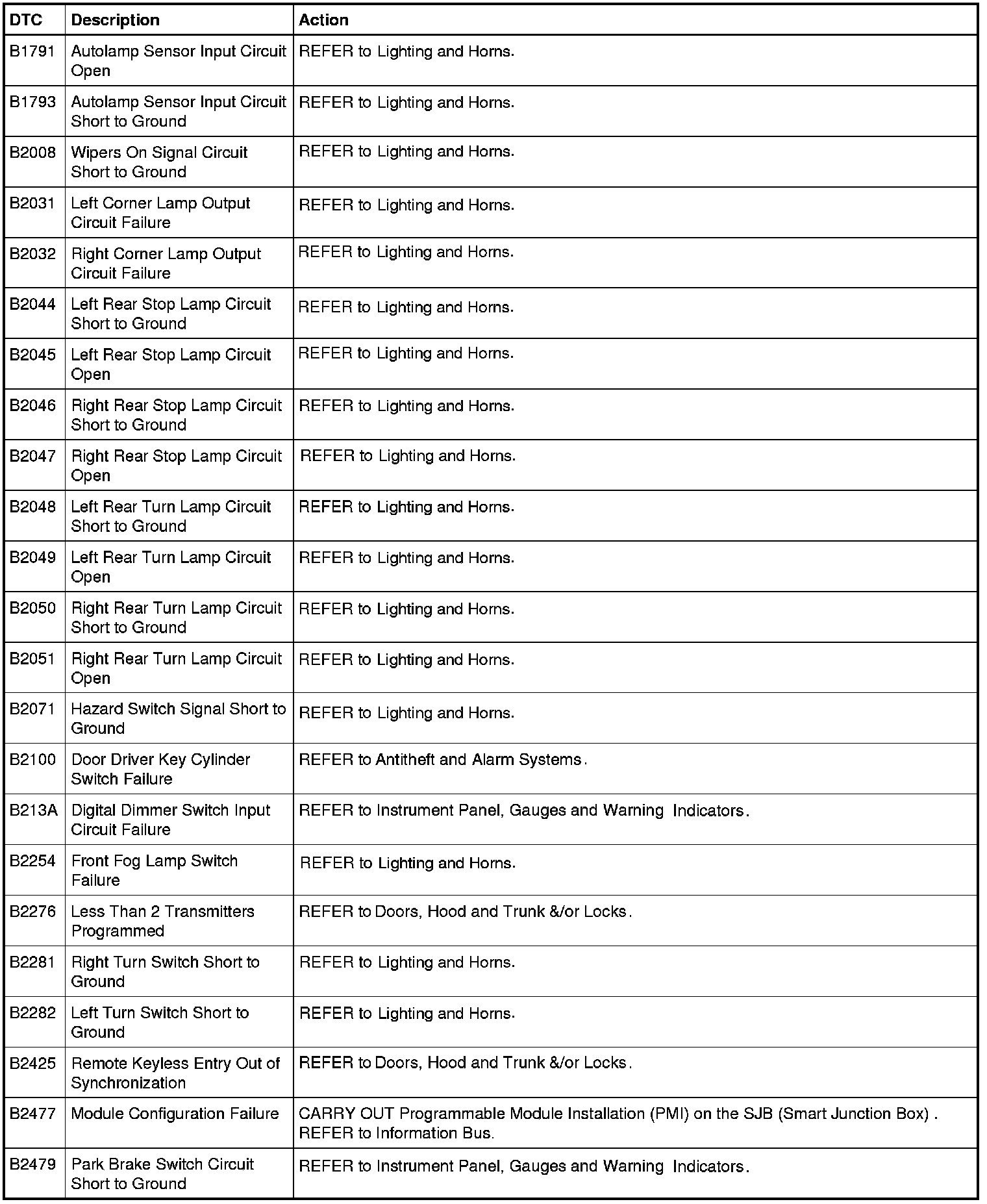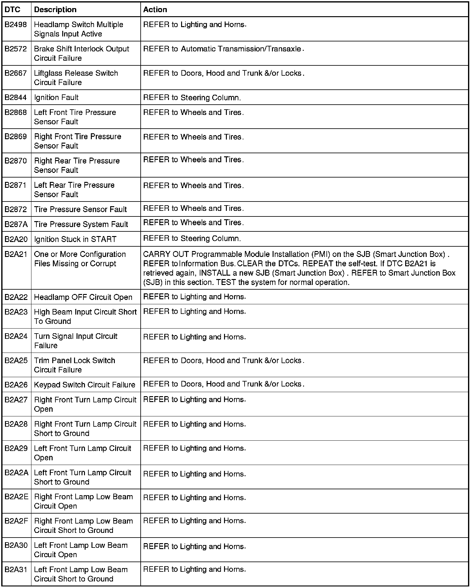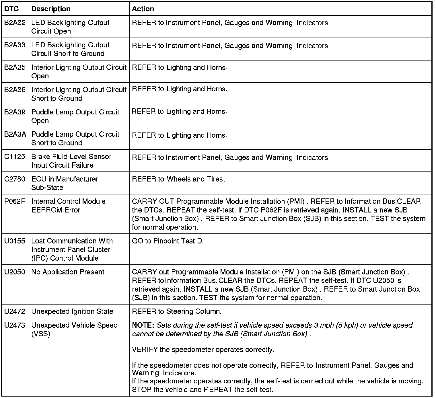 Smart Junction Box (SJB) DTC Chart