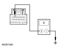 - Measure the voltage between the FDIM (Front Display Interface Module) C2123-5, circuit CMN23 (WH/BU), harness side and ground.