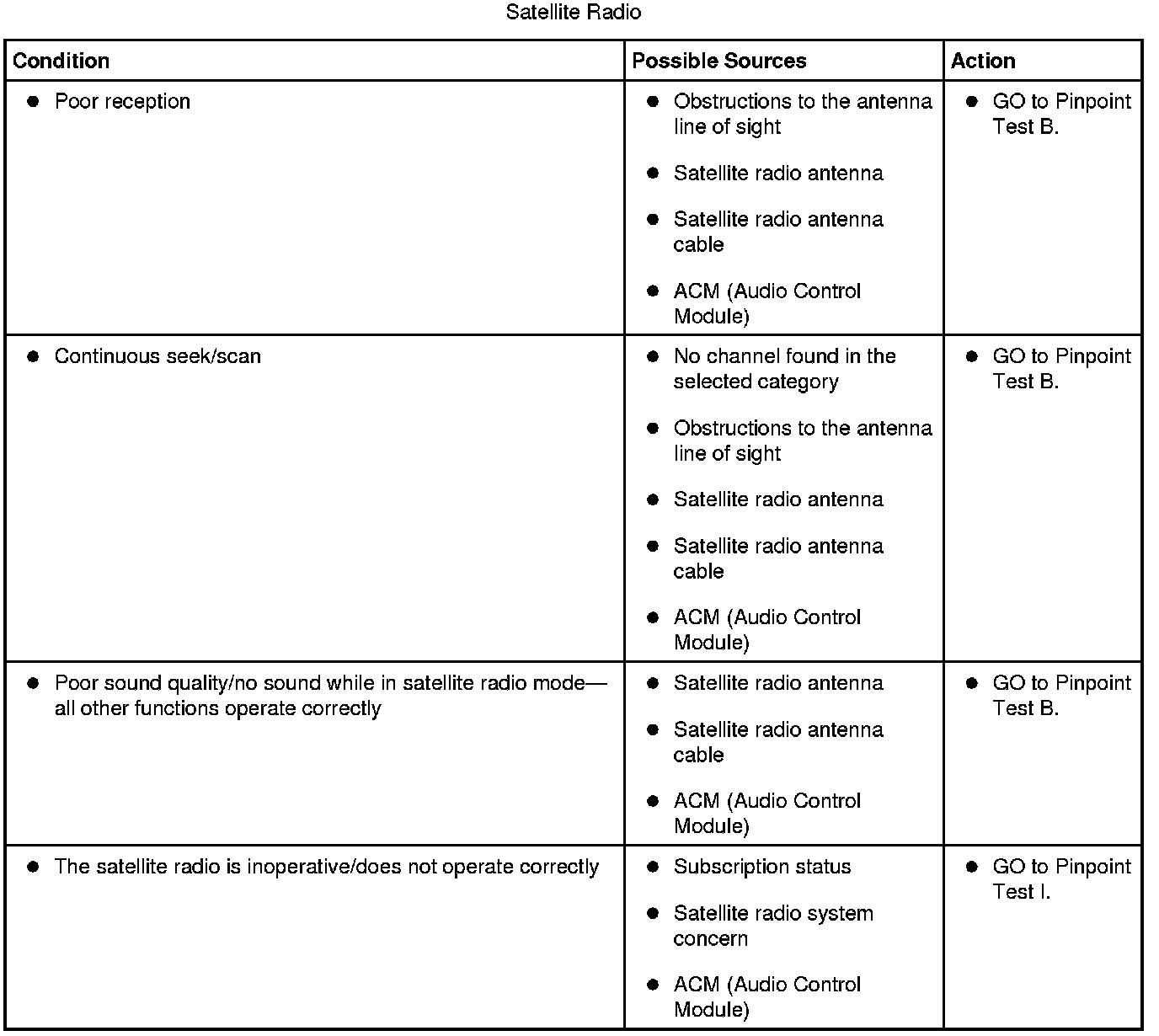 Symptom Chart - Satellite Radio