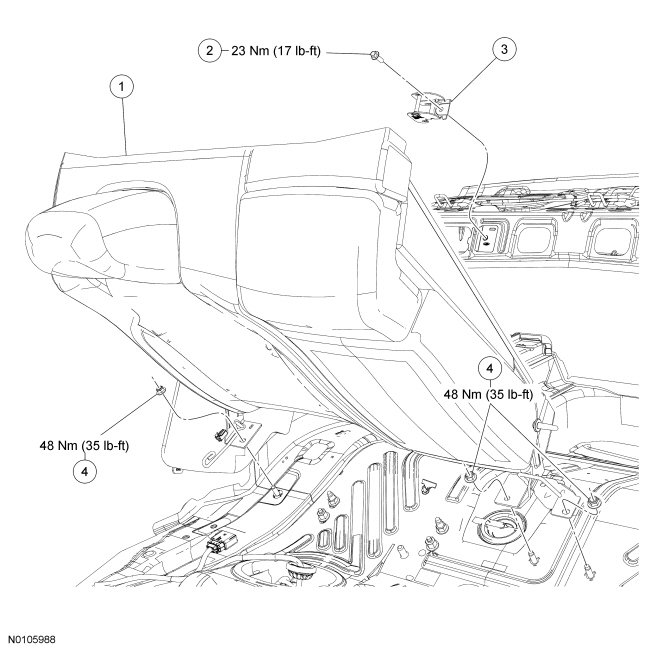 1. Remove the rear seat cushion. For additional information, refer to Seat Cushion- Rear Seat Cushion - Rear.