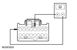 - Measure the resistance between DCSM (Dual Climate Controlled Seat Module) C3265C-4, circuit VHS21 (BU/WH), harness side and C3265C-8, circuit CHS08 (BN/YE), harness side.