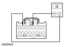 - Measure the resistance between DCSM (Dual Climate Controlled Seat Module) C3265C-4, circuit VHS21 (BU/WH), harness side and ground.