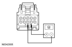 - Measure the resistance between driver seat cushion TED (Thermo-Electric Device) C3035 pin 5 and pin 8, component side. Note the ambient temperature and refer to the following table.
