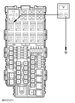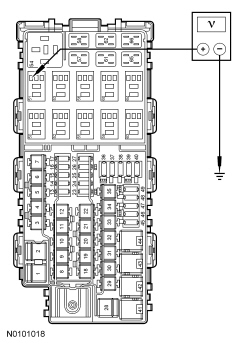 - Measure the voltage between stoplamp relay cavity 1, circuit CCA28 (GY/BN) and ground.