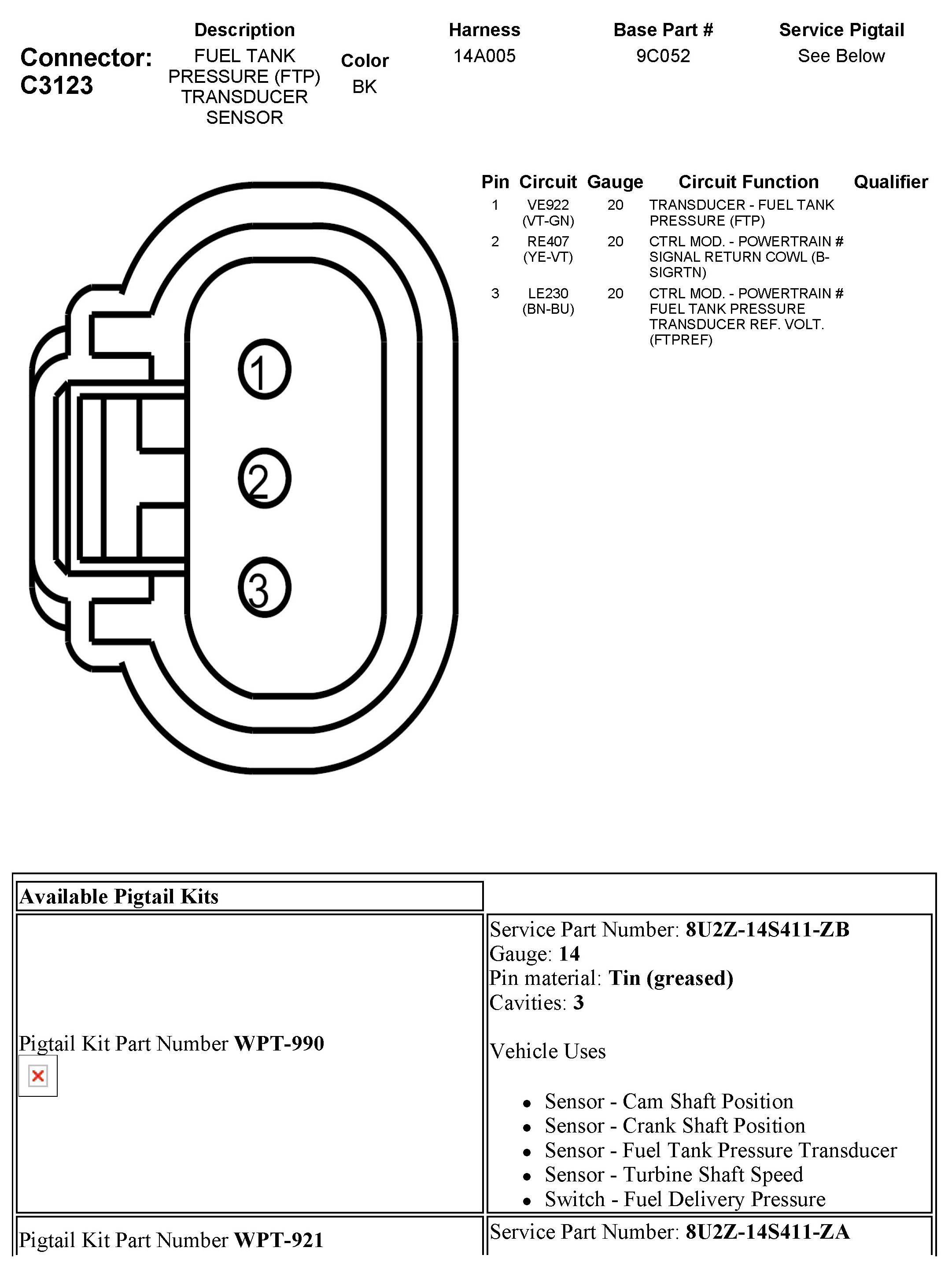 C3123 Fuel Tank Pressure (FTP) Transducer Sensor