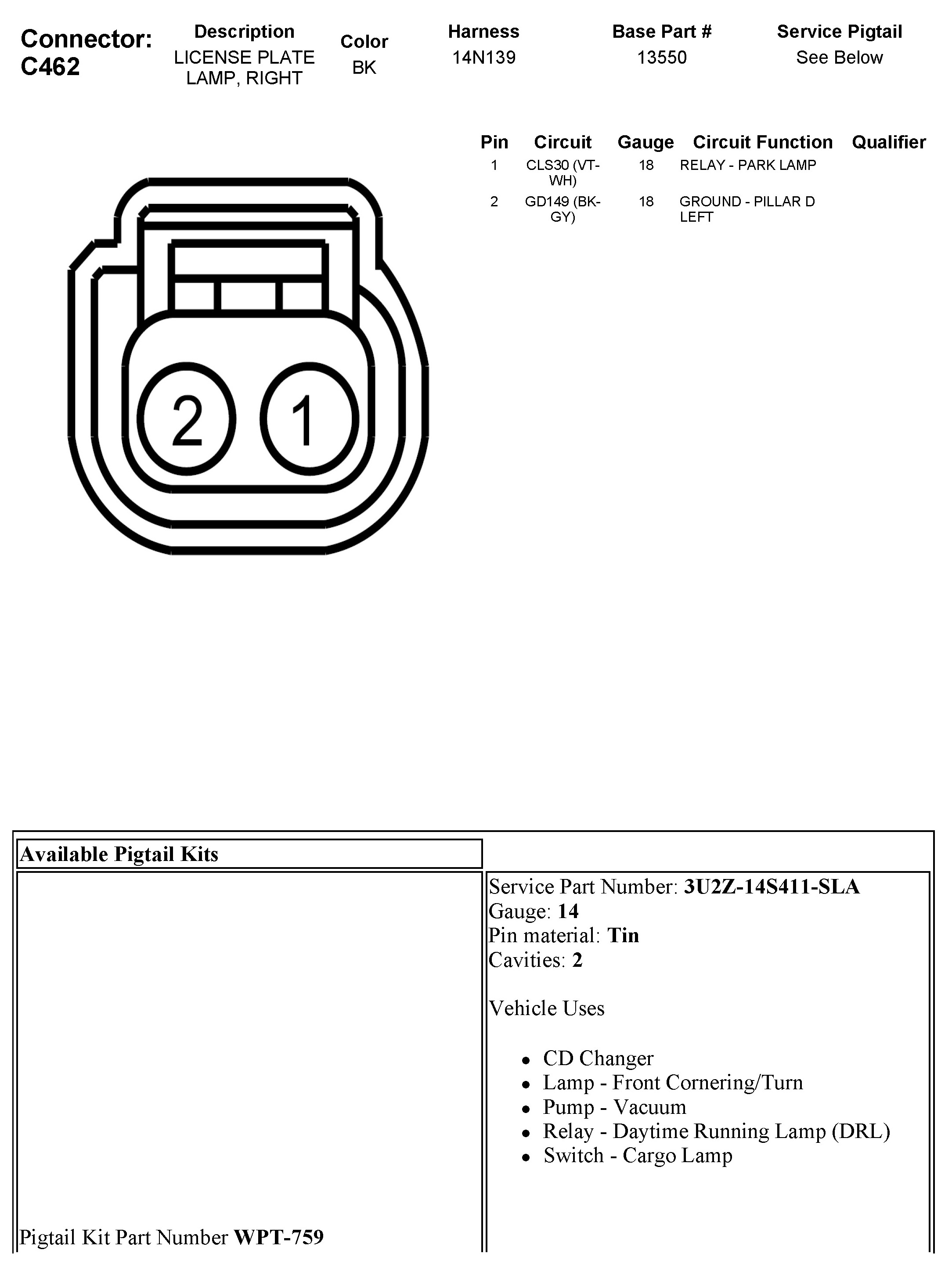 C462 License Plate Lamp, Right