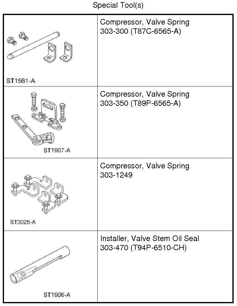 1. Using the Valve Spring Compressors, remove the keys, retainer and spring.