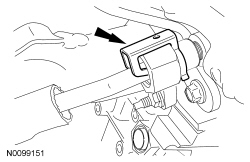 166. Connect the RH VCT (Variable Camshaft Timing) solenoid electrical connector and attach the 2 wiring harness retainers.
