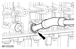 NOTE: Make sure the fuel rail wiring harnesses are routed correct.