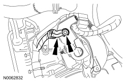 81. Connect the 2 Electronic Power Assist Steering (EPAS) electrical connectors (1 shown) and attach the wiring retainer (not shown) and install the bolt.