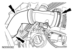 NOTICE: Whenever turbocharger air intake system components are removed, always cover open ports to protect from debris. It is important that no foreign material enter the system. The turbocharger compressor vanes are susceptible to damage from even small particles. All components should be inspected and cleaned, if necessary, prior to installation or reassembly.