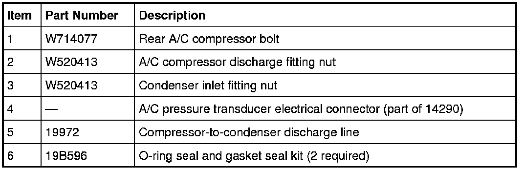 6. Remove the A/C compressor discharge fitting nut and disconnect the fitting.