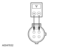 - Measure the voltage between ground and A/C pressure transducer C1260-3, circuit VH433 (VT/OG), harness side.