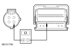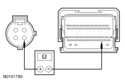 - Measure the resistance between ground and A/C pressure transducer C1260-3, circuit VH433 (VT/OG), harness side.