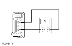 - For a front turn lamp, measure the voltage between the LH front turn lamp C1023-3, circuit CLS21 (BU/GN), harness side and ground; or between the RH front turn lamp C1043-3, circuit CLS25 (YE/VT), harness side and ground.