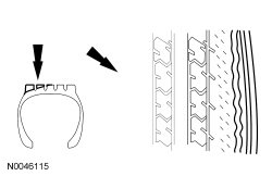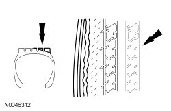 1. Inspect the tires for signs of uneven wear. Refer to the following descriptions to identify the type of wear and GO to Symptom Chart- Tire Wear for the appropriate repair action to be carried out. Symptom Chart - Tire Wear