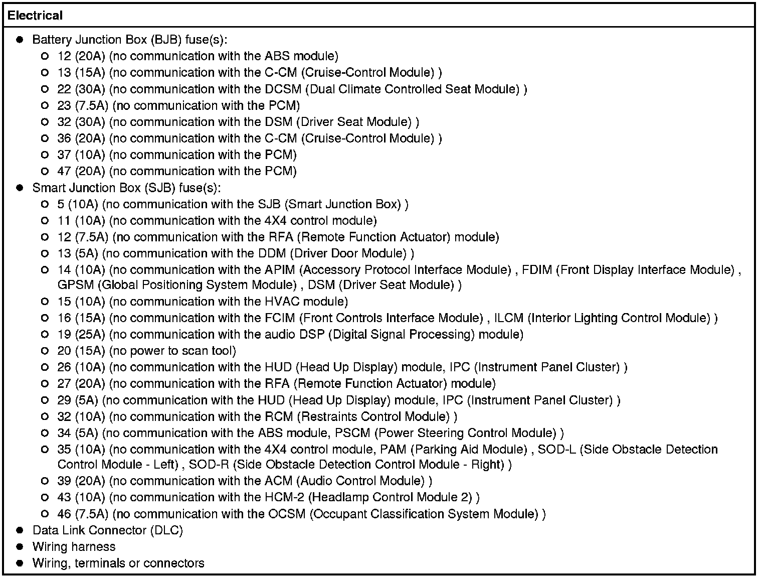 - If the network test fails, GO to Symptom Chart to identify the module not communicating. Symptom Related Diagnostic Procedures