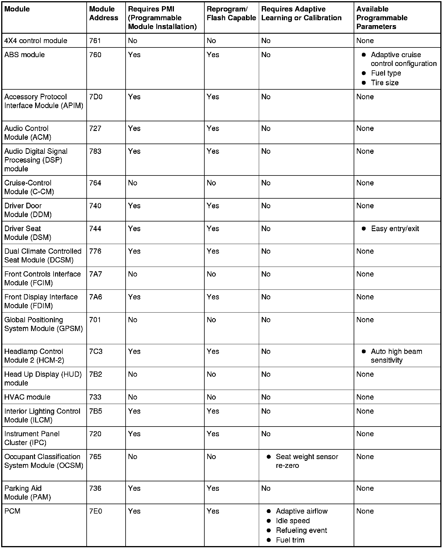 Programmable parameters are customer preference items that may be modified by the dealer via scan tool or in some cases modified by the customer following a procedure listed in the Owner's Literature. While many configuration options may exist for a module, only a few of these options are programmable parameters.