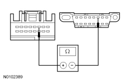 - Measure the resistance between the PAM (Parking Aid Module) C4014-4, circuit GD149 (BK/GY), harness side and ground.