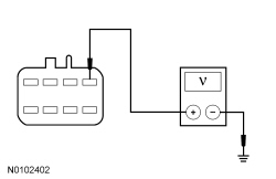 - Measure the voltage between the HCM-2 (Headlamp Control Module 2) inline C913-A, circuit CBP43 (GY), harness (female) side and ground.
