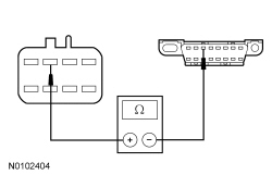 - Measure the resistance between the HCM-2 (Headlamp Control Module 2) inline C913-F, circuit VDB07 (VT/OG), harness (female) side and the DLC (Data Link Connector) C251-11, circuit VDB07 (VT/OG), harness side.