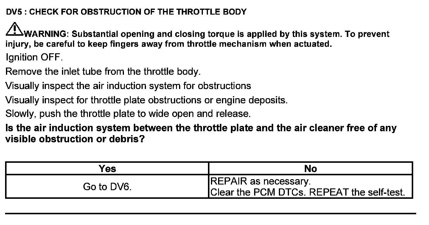 Test DV: Throttle Body Assembly Electronic Throttle Control (ETC)