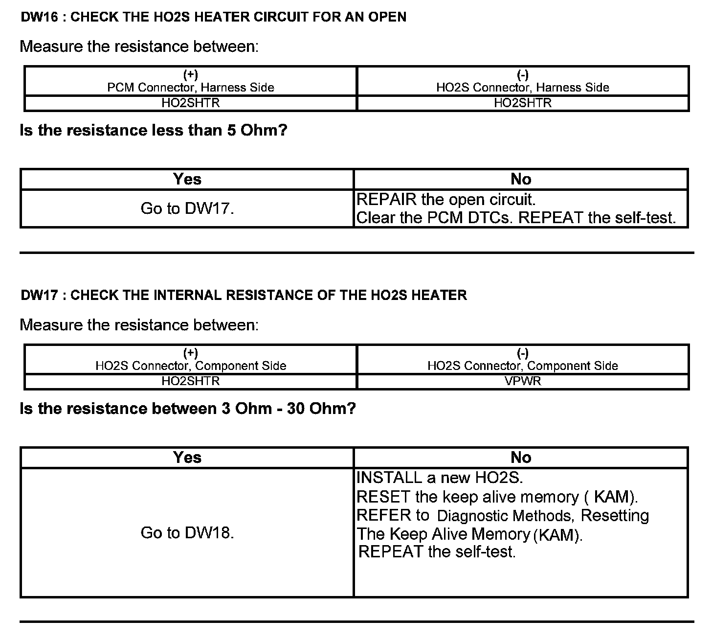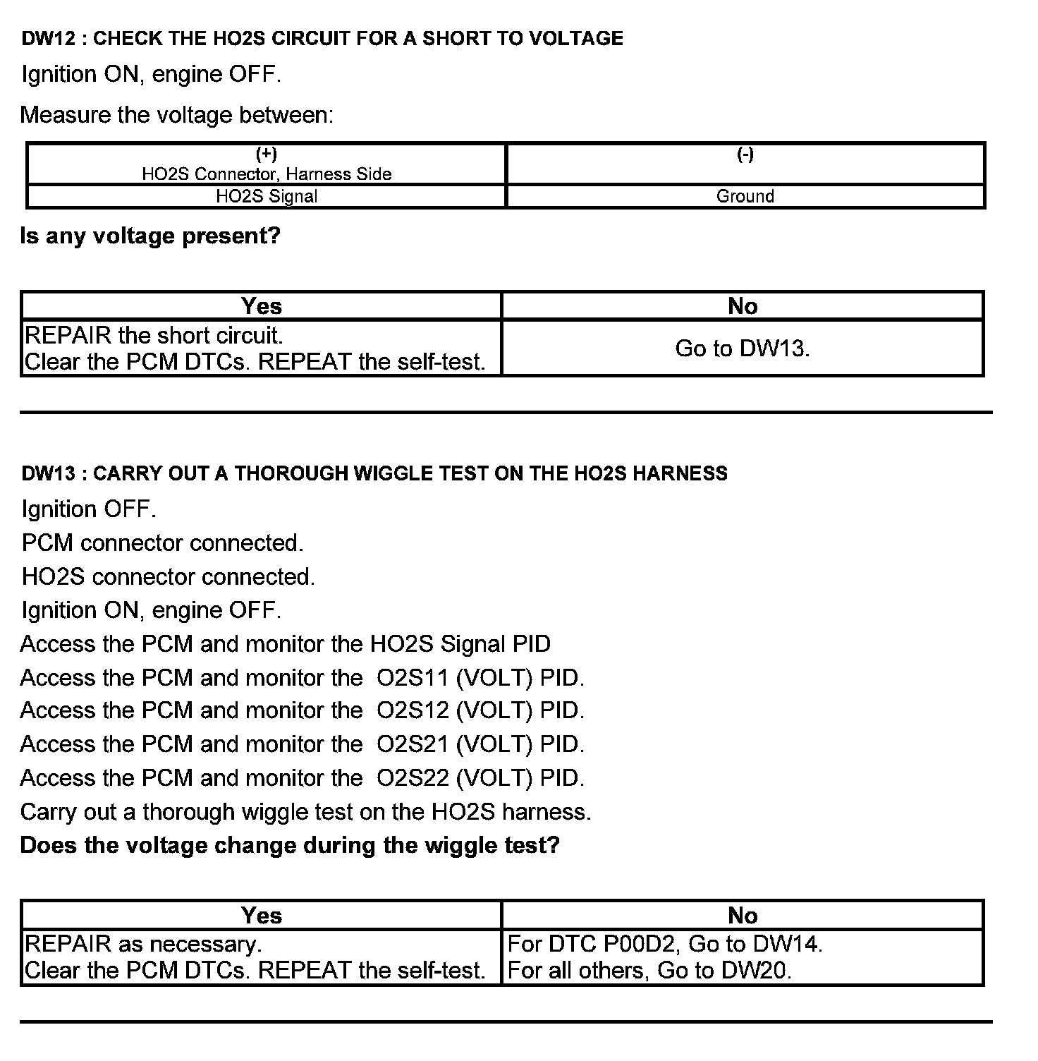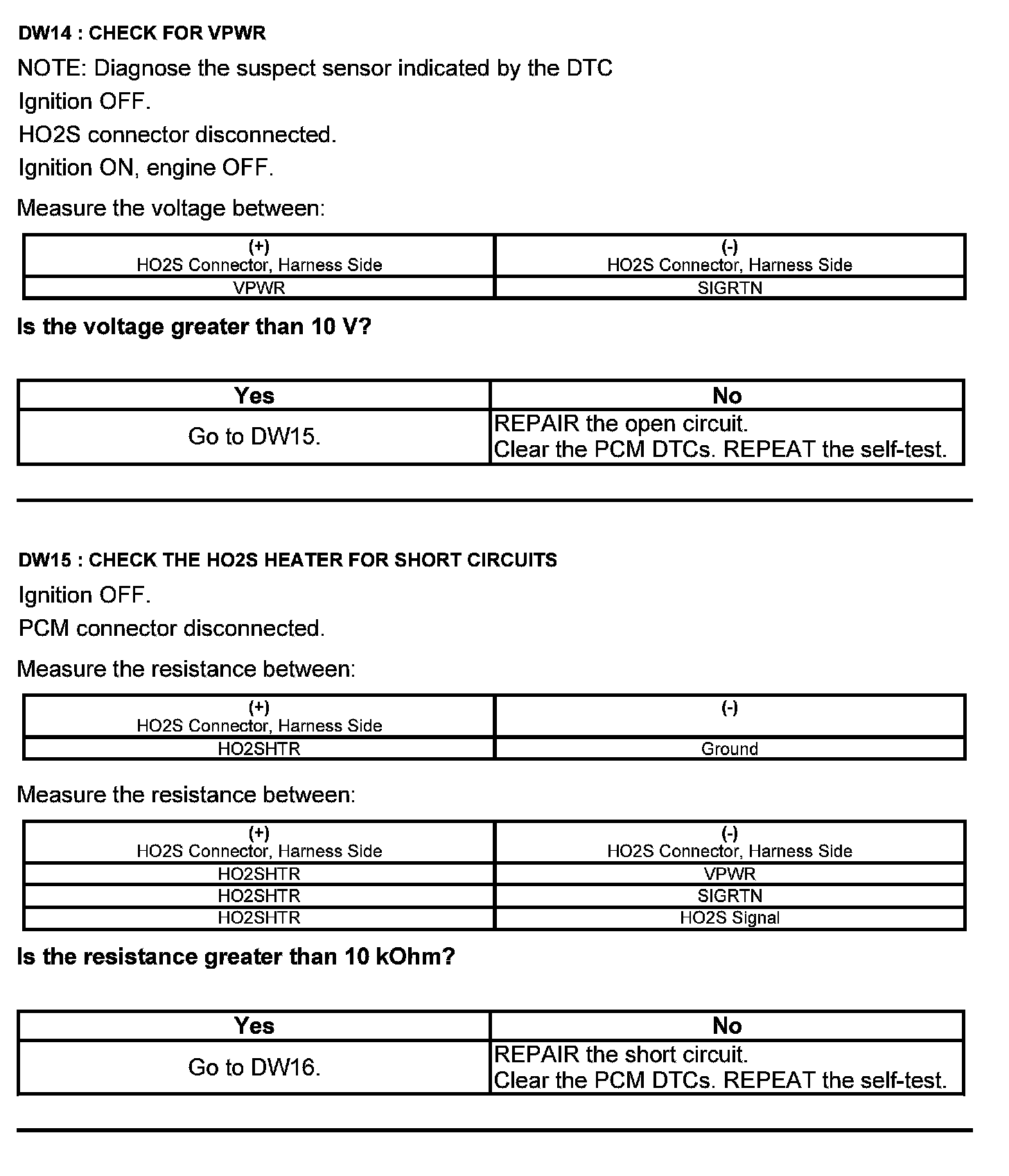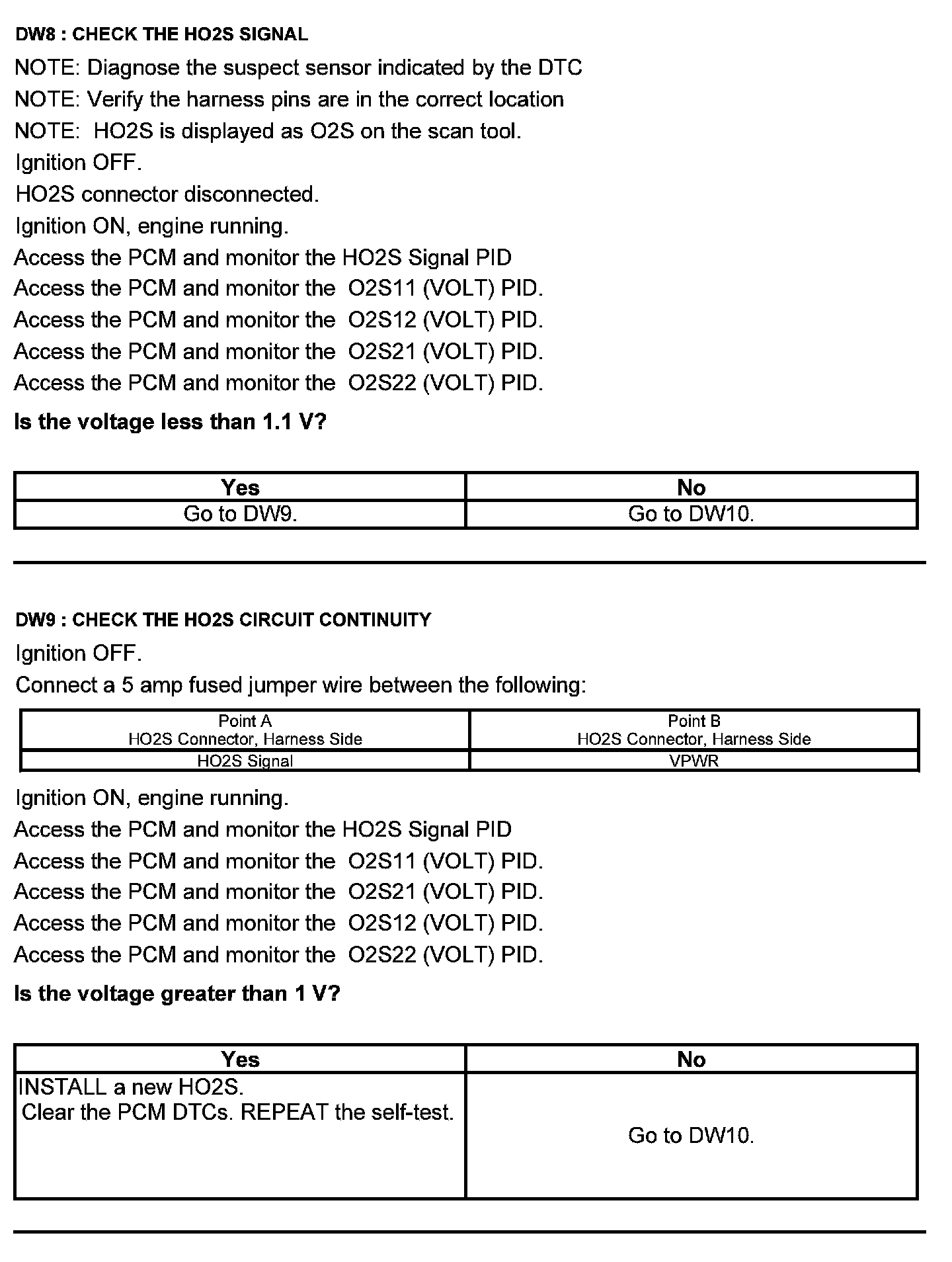 Test DW: Heated Oxygen Sensor (HO2S)