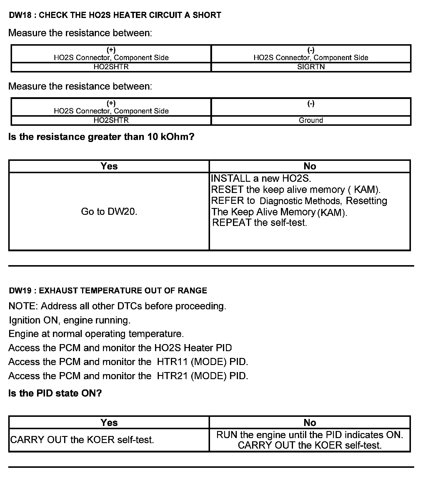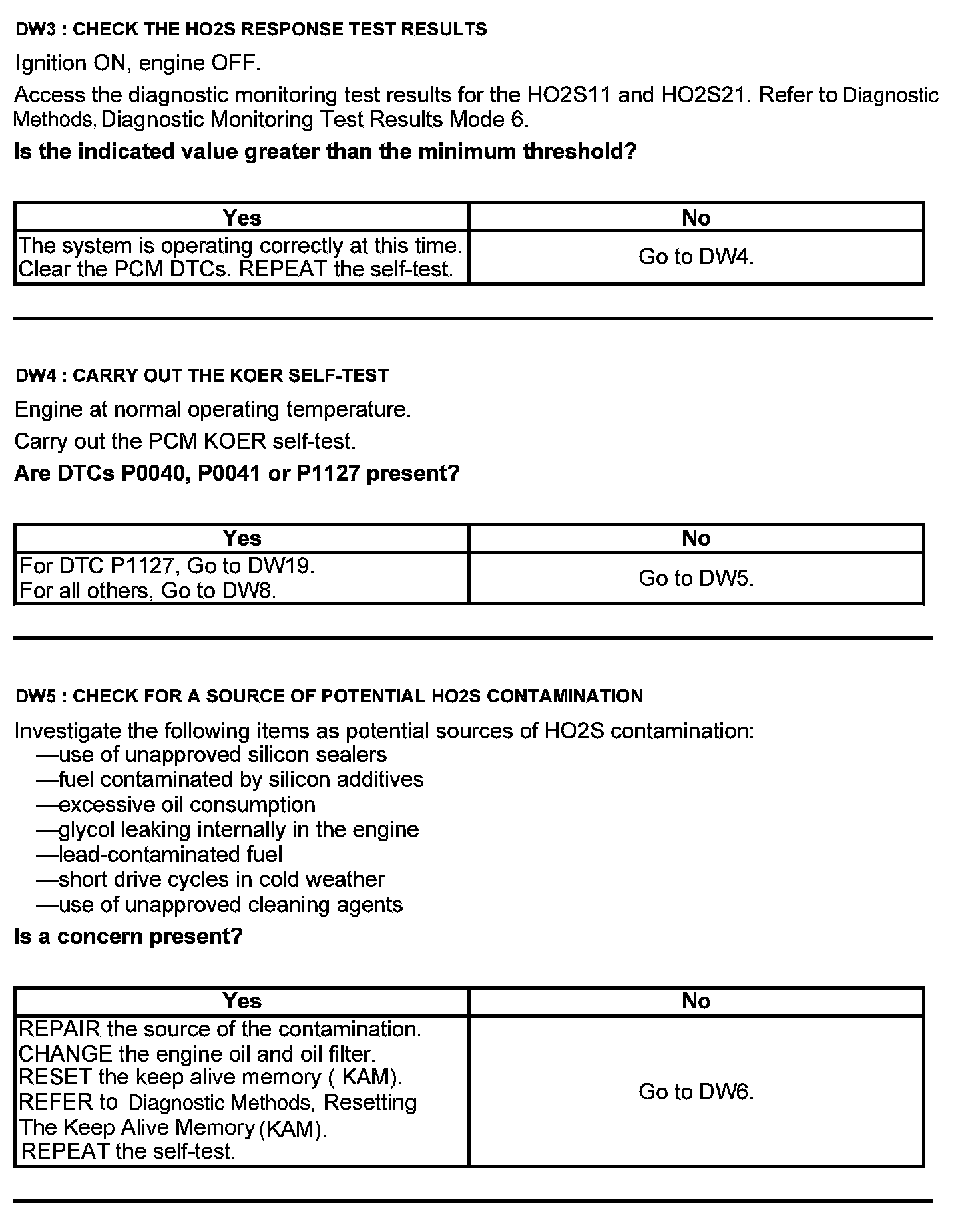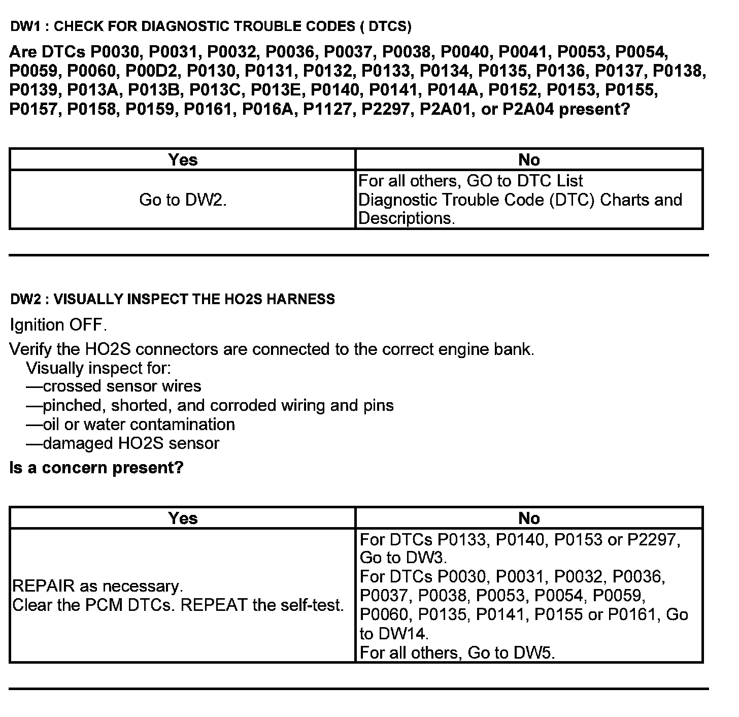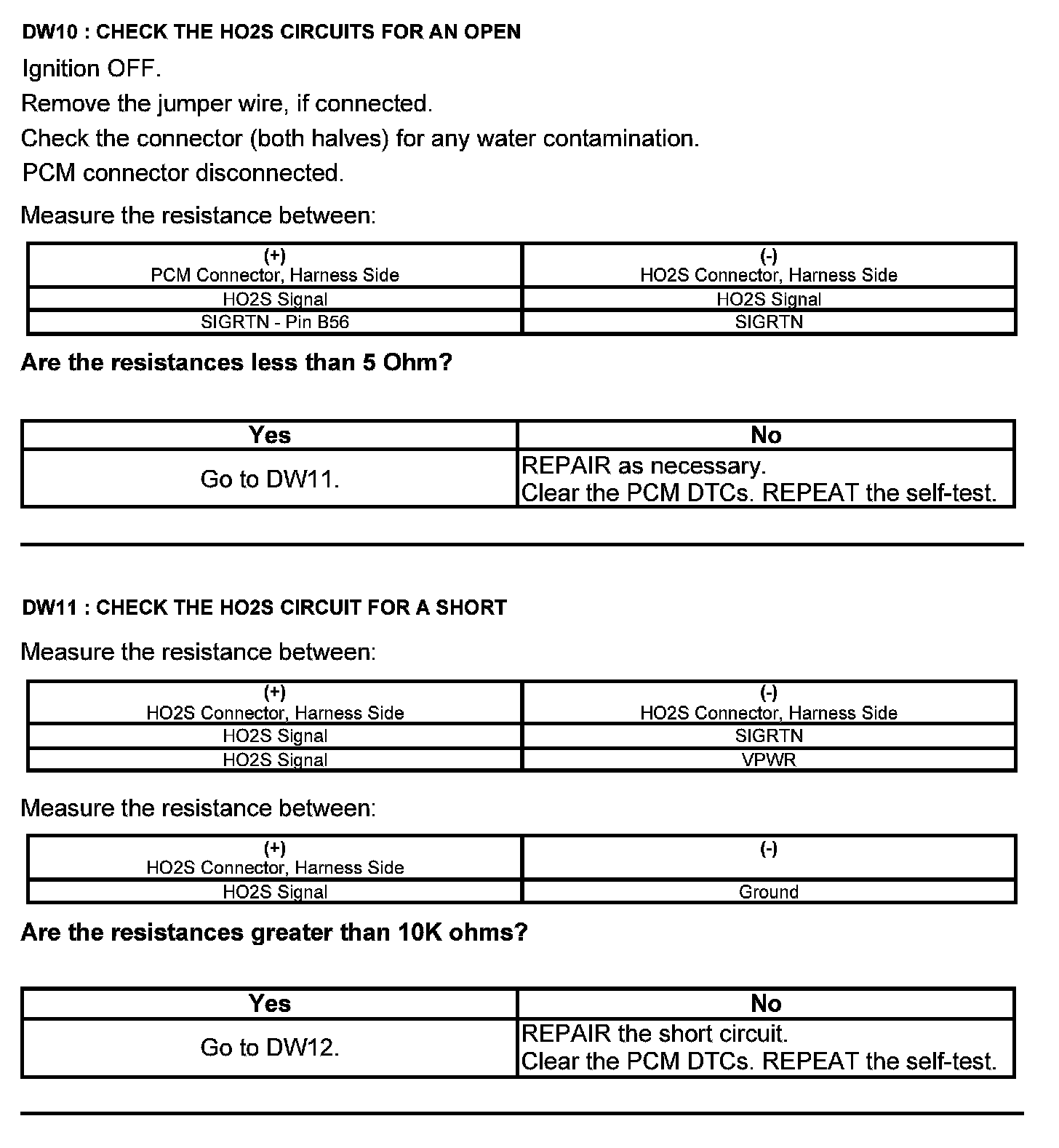 Test DW: Heated Oxygen Sensor (HO2S)