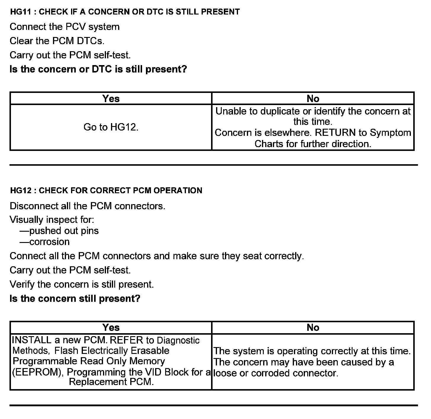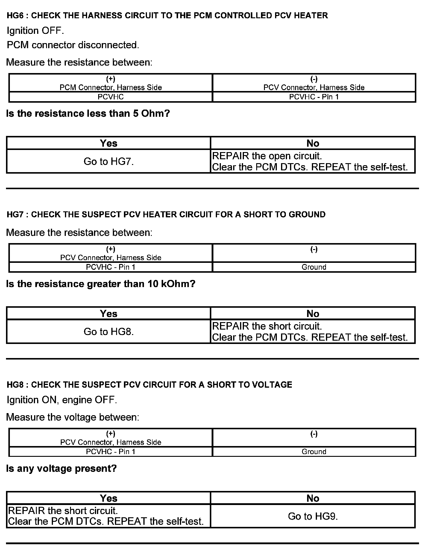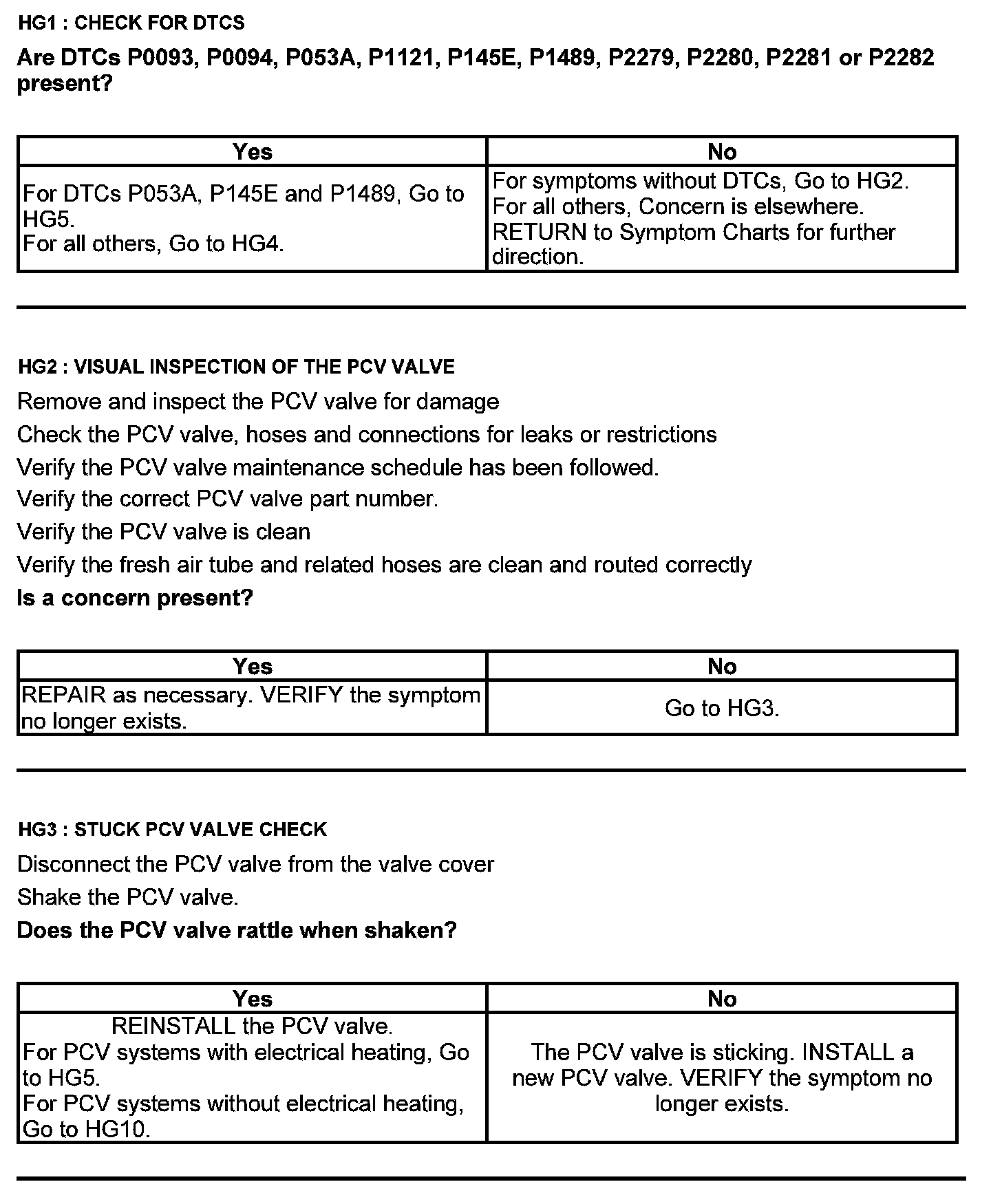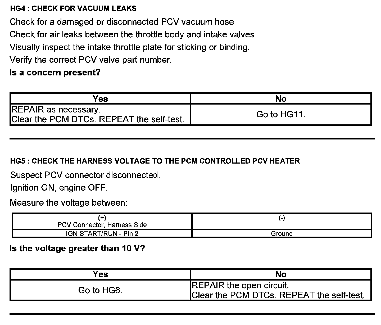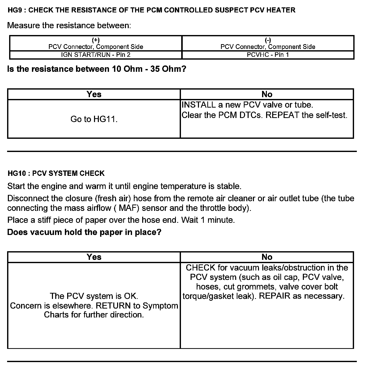 Test HG: Positive Crankcase Ventilation (PCV) System