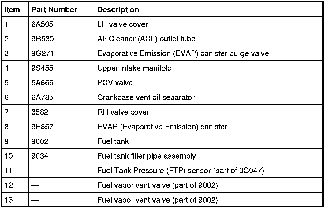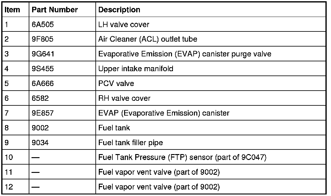 - fuel vapor tube assembly (includes the Fuel Tank Pressure (FTP) sensor).