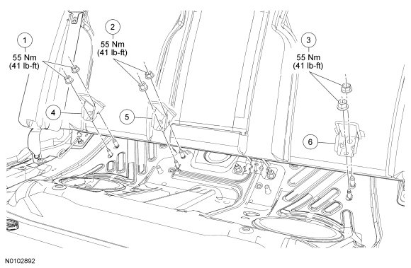2. Remove the 2 nuts and the affected lower anchors and tethers for children.