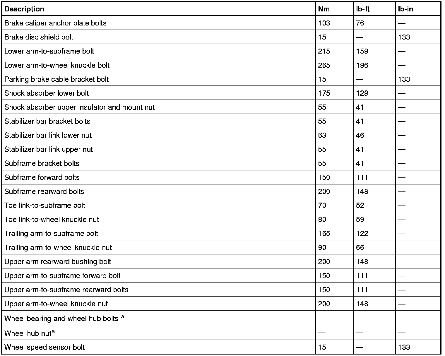 Torque Specifications