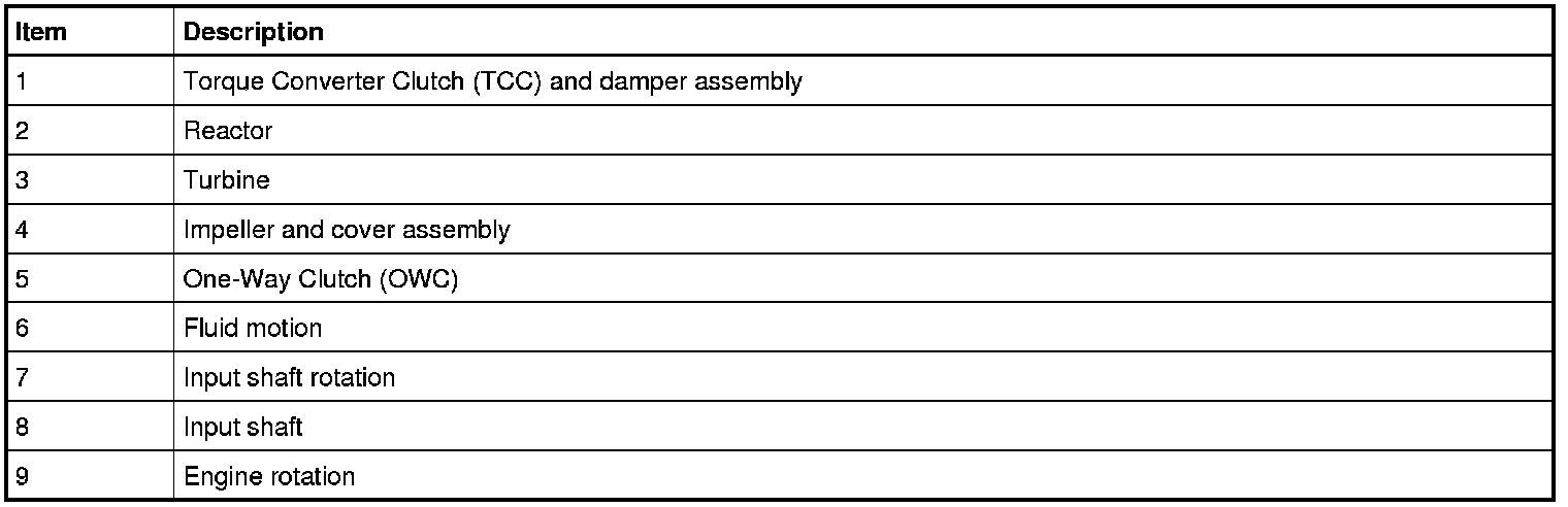 The Torque Converter Clutch (TCC) connects the torque converter housing to the damper when the TCC (Torque Converter Clutch) is applied.
