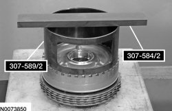 100. Remove the Overdrive Clutch, Balance Piston and Direct Clutch Compressor 307-589/2 and the Forward/Intermediate Spring Compressor 307-584/2.
