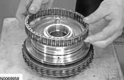 101. Using petroleum jelly, install the No. 1 thrust bearing on the overdrive/direct clutch assembly.