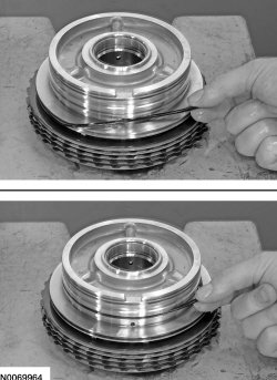 116. Lubricate a new direct clutch piston with petroleum jelly and install the piston.