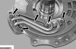 179. Tighten the 2 stator support feed tube Torx(R) head bolts.