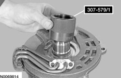 175. Remove the Support Solid Seal Installer 307-579 (includes 307-579/2 and 307-579/3) from the stator support assembly.