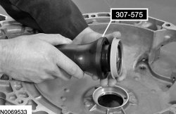 203. Install a new torque converter hub seal on the Converter Seal Installer 307-575.