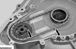 207. Install the pump drive sprocket and driven sprocket thrust washers.