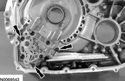 NOTICE: Make sure that the filter passage areas are clean of foreign material before installing the filter. Damage to the transaxle will occur if the filter passages are not clean.