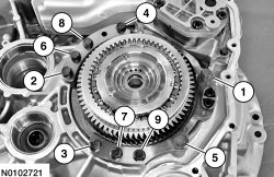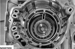 225. Install the forward clutch piston return spring with the tabs facing downward.