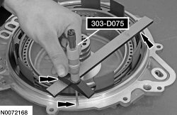 285. NOTICE: Only thread the bolts 6 to 8 turns or do not exceed 12 mm (0.472 in) in the torque converter. If the bolts are threaded too far, damage to the torque converter clutch surface can occur, causing torque converter failure.