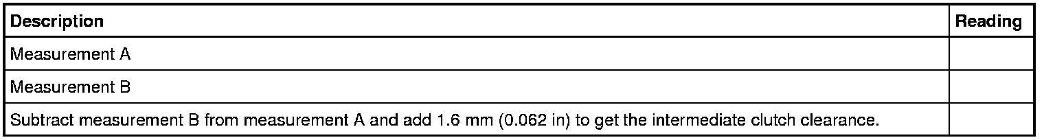 263. Subtract measurement B from measurement A and add 1.6 mm (0.062 in), to compensate for the thickness of the gasket, to get the intermediate clutch clearance. The clearance should be between 0.99 mm (0.038 in) and 2.56 mm (0.1 in). If the clearance is out of range, check the intermediate clutch pack for correct installation. If the intermediate clutch pack is correctly installed, install a new intermediate clutch pack.