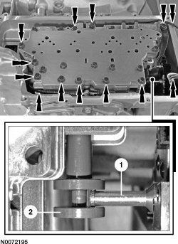 NOTE: Make sure that the manual pin (part of the TR (Transmission Range) sensor) is correctly installed in the manual valve.