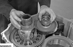 1. Install the differential and transfer shaft bearing cups on the bearings.